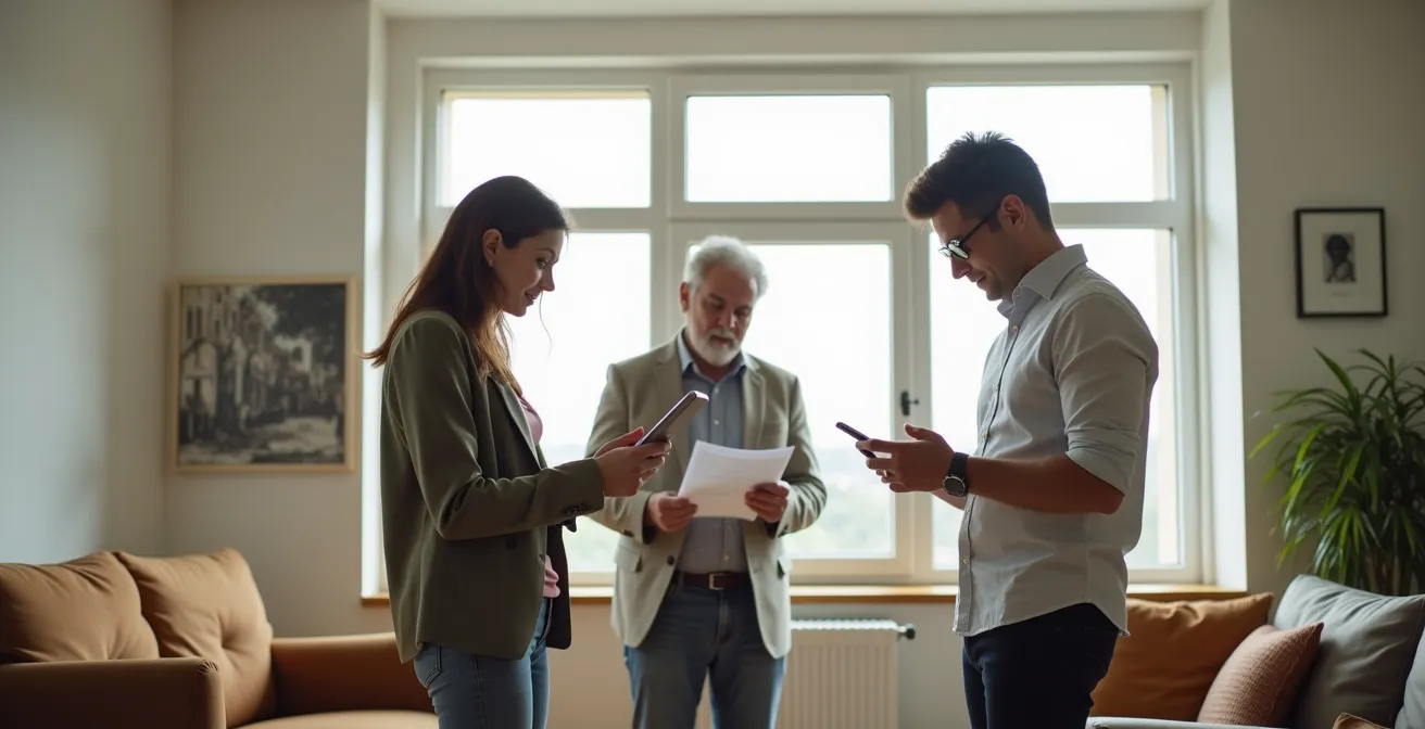 Comme le montre cette image, la décision d’achat se transforme souvent en une analyse frénétique sous pression, où la peur de faire le mauvais choix paralyse autant que la peur de ne pas choisir du tout. Chaque document devient une pièce d’un puzzle à résoudre en un temps record. La lucidité est votre meilleur atout, et elle ne s’obtient qu’en préparant votre stratégie à froid, bien avant d’être exposé à la chaleur de la visite. Connaître votre budget maximal absolu, vos critères non négociables et votre plan B vous servira de garde-fou lorsque l’adrénaline montera.